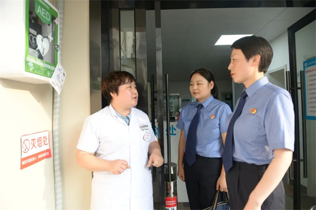 今年4月,浙江省杭州市上城區(qū)檢察院檢察官對(duì)AED配置情況進(jìn)行回訪。本報(bào)通訊員毛藝超攝